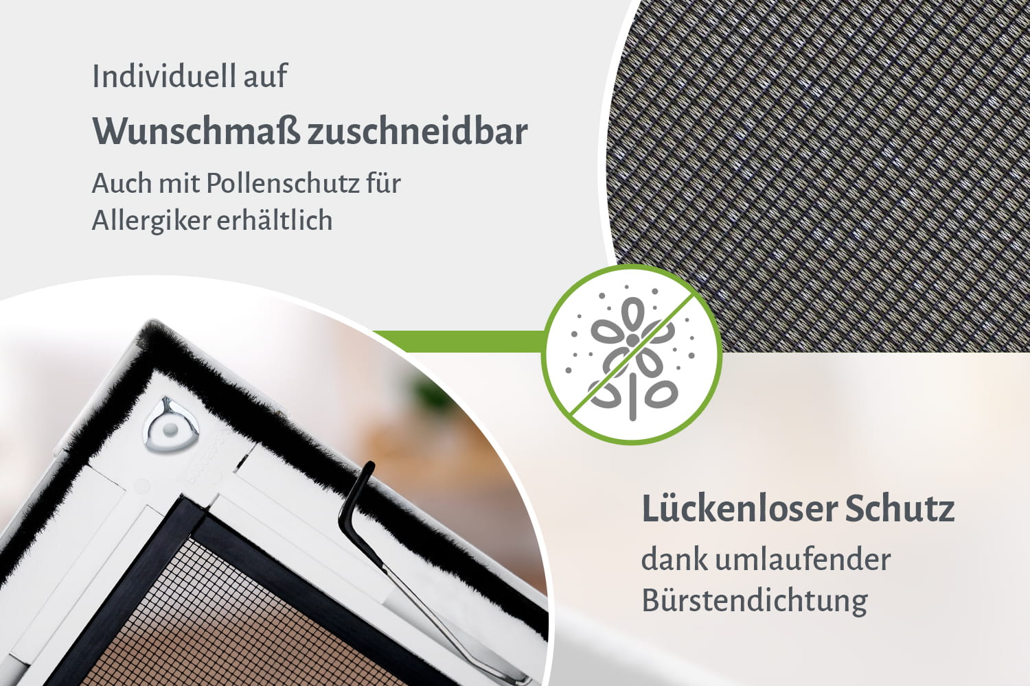 - Wahlweise Filatec®Insektenschutz-Gewebe für klare Sicht oder Pollenschutz-Gewebe zur Reduzierung von Pollen
