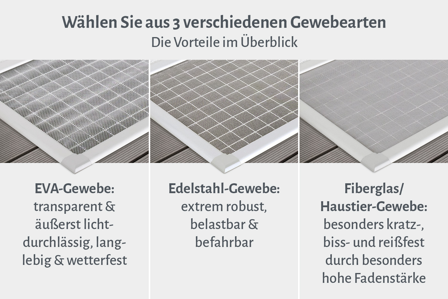 • Haustier (Fiberglas): erhöhte Fadenstärke, kratz- & bissfest.