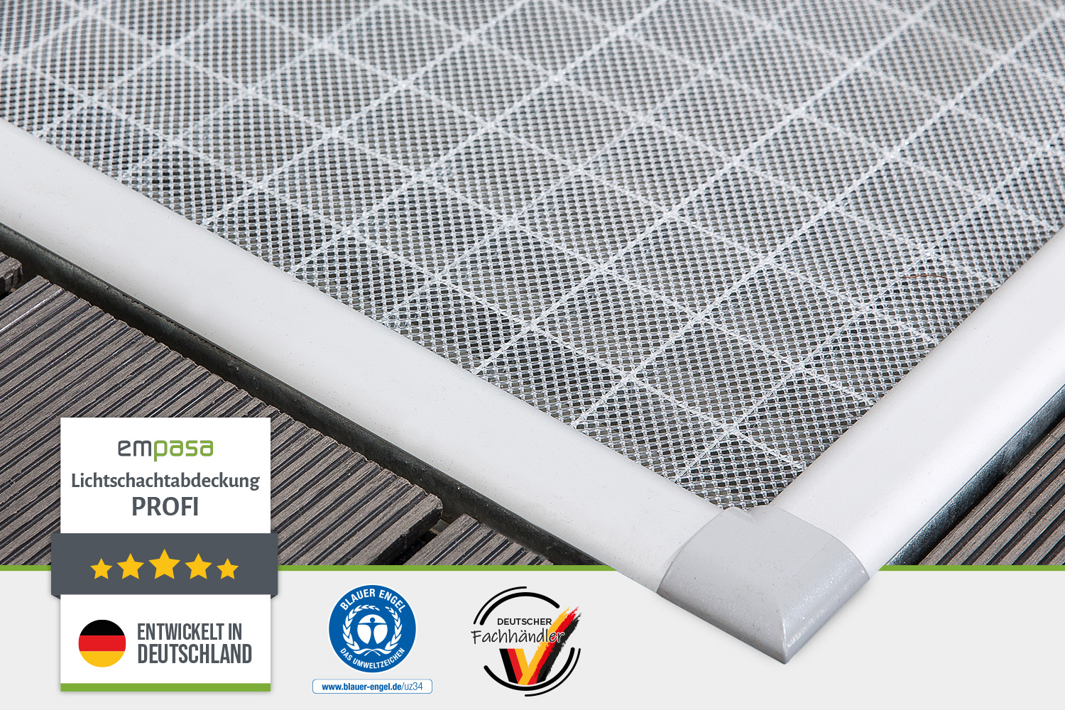 Die Lichtschachtabdeckung PROFI schützt zuverlässig vor Blättern, Schmutz und Insekten. Das jeweilige Gewebe sorgt für viel Licht und Helligkeit im Kellerraum, während der stabile, rostfreie Aluminiumrahmen eine hochwertige Optik mit langer Lebensdauer verbindet. Mit den beiliegenden Schrauben montierst du die Abdeckung im Handumdrehen am vorhandenen Gitterrost. Sie passt auf alle gängigen Schachtgrößen und ist wahlweise als Zuschnitt nach Maß oder komplett vormontiert erhältlich.